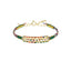 Macramé bracelet composed of articulated motifs in 925 Sterling silver with a gold finish, adorned with multicolored Tourmalines and mounted on a set of braided and woven silk yarns in dominant shades of caramel and brown.