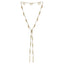 Thin braided lariat necklace with multi-strand chain fringe made of ruthenium-finished Sterling silver chain and Lurex gold yarn. Multiple 1,5 cm fringes are set regularly every 3 cm around the necklace.