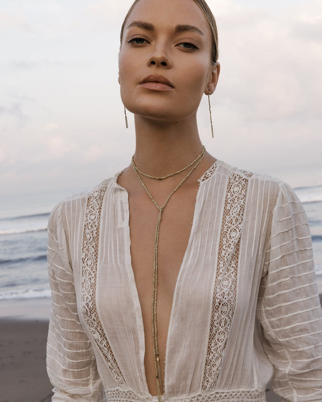 Une pièce raffinée à porter également enroulée plusieurs fois autour du cou pour créer un effet d'accumulation.