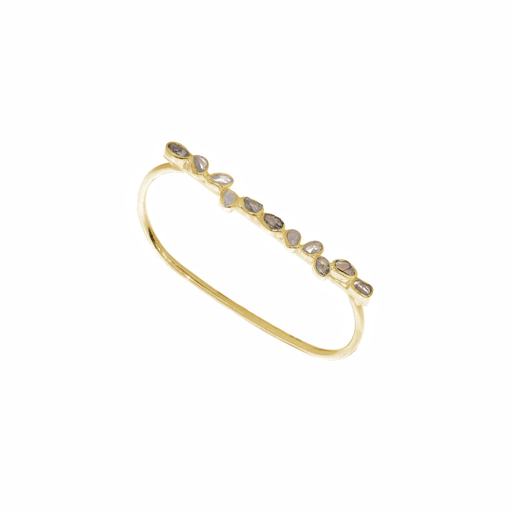 Double-finger ring in 925 Sterling silver with a gold finish, set with an irregular pavé of Polki diamonds.